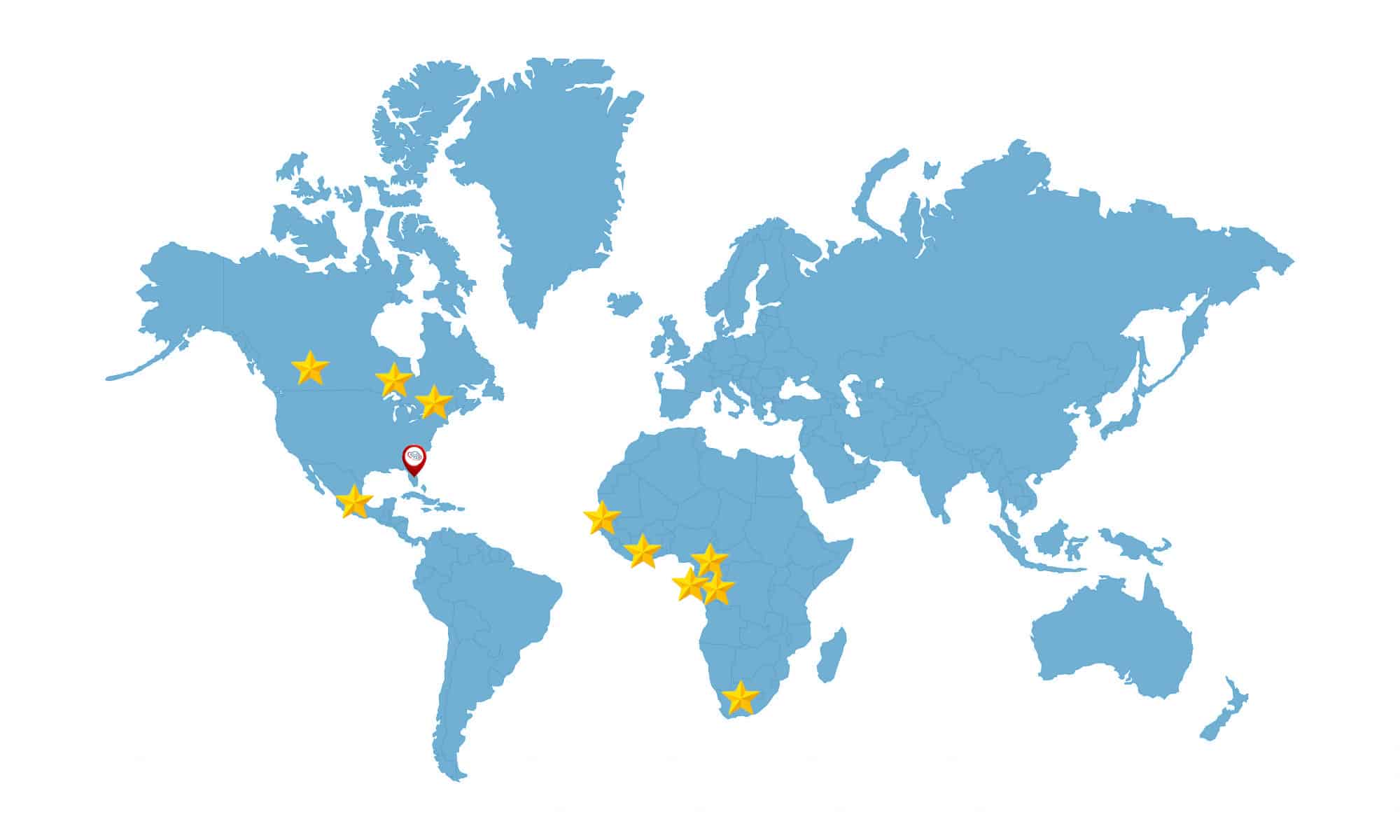 Operamos en Montreal, Toronto, Calgary, México, Florida, Senegal, Costa de Marfil, Camerún, República del Congo, Gabón, Sudáfrica y más allá.